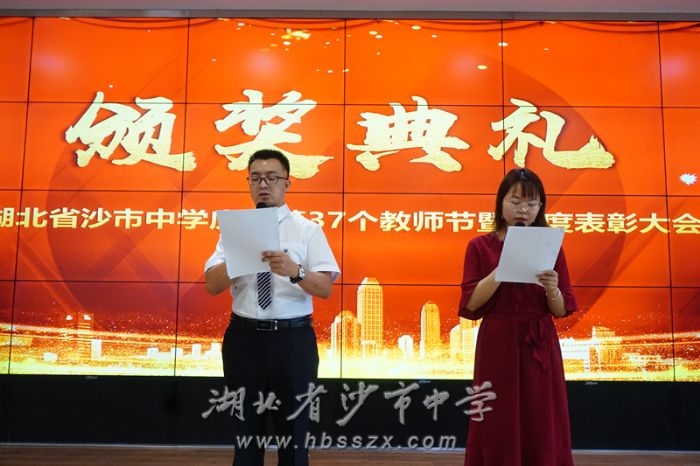 大会以颁奖礼的形式礼赞过去一年来沙市中学广大教师不忘立德树人初心,牢记为党育人、为国育才使命的高尚情怀,对获得“学生最喜爱的教师”、管理育人奖、服务育人奖、教师育人奖、优秀党员和党务工作者、综合荣誉、年度贡献奖、十佳青年和习坎名师等各类奖项或荣誉称号的教职工颁奖。学校工会主席胡直宣读表彰决定。