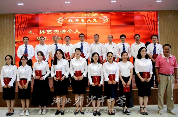 沙市中学校友基金会理事长曹光炎和副校长吴本萍颁发“教学比武能手”奖、“教科研先进个人”奖、“校本课程及教材研发先进”奖、“体艺先进个人”奖。