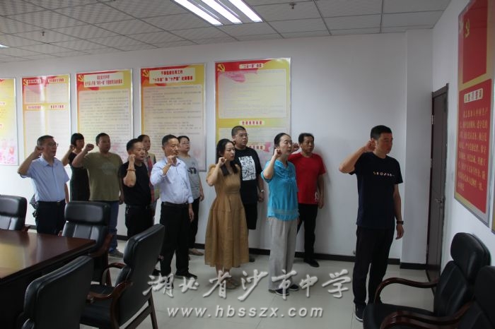 重温誓词 根据市委组织部、市直机关工委的要求,结合我校实际,9月18日下午,湖北省沙市中学各支部组织开展了九月主题党日活动。活动由各支部书记主持,全体党员参加了活动。