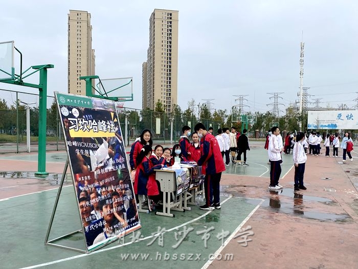 2021年10月18日上午,在我校团委学生会的组织下,26个学生社团在篮球场如火如荼地开展了面向高一新生的社团招新活动。校党委书记、校长熊礼才亲临现场,并与学生们进行了近距离的交流。
