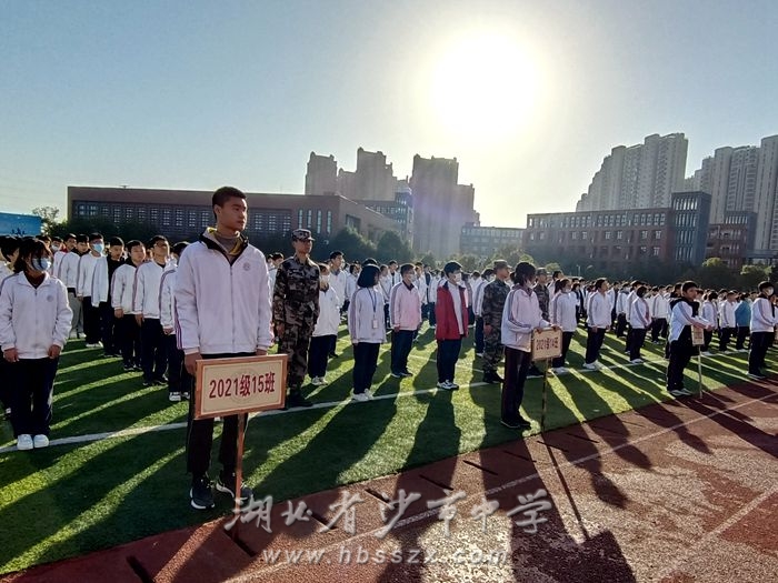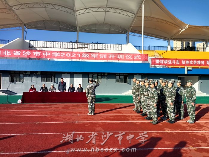 2021年11月8日上午八点,我校在学校操场隆重举行了2021级新生军训开训仪式。仪式由学生成长中心主任李雪冰主持,全体校领导、高一年级班主任、全体2021级高一新生及荆州市公安消防支队领导与教官参加。