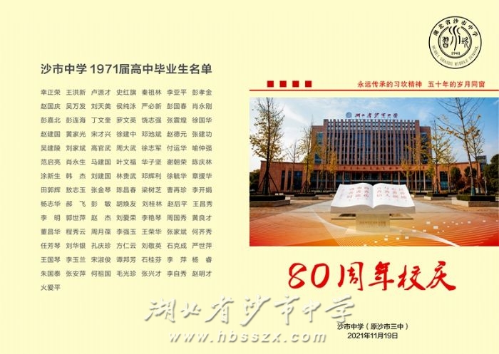 沙市中学1971届校友送给母校80华诞的校庆献词