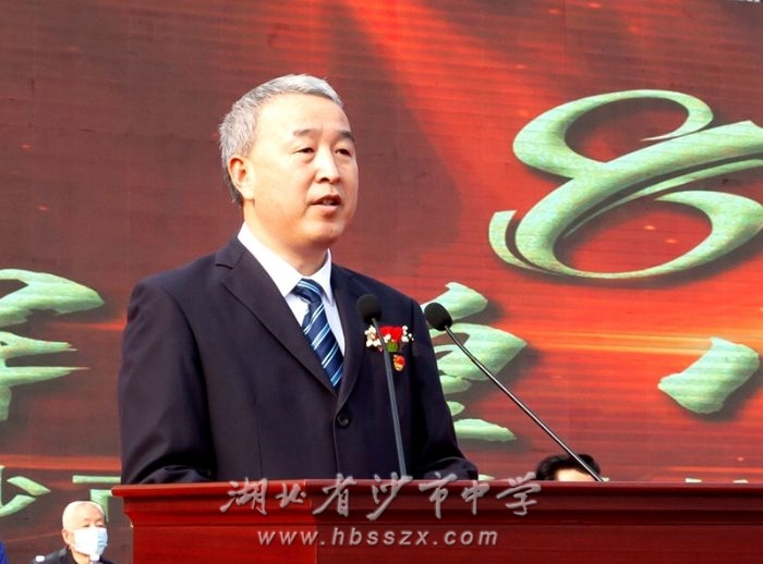 他说,沙市中学征途八十载,是一部以家国情怀铸魂的心灵史,是一部以文化传承培根的精神史,是一部以素质教育立校的奋斗史。他表示,今天,我们接过学校发展的接力棒,担负着建设“人民满意学校”的使命,担负着创建“湖北省一流高中”的历史重任。他希望全校师生继续以习坎精神涵养身心,砥砺自我,自强不息,努力创造荆楚教育的亮丽新篇!
