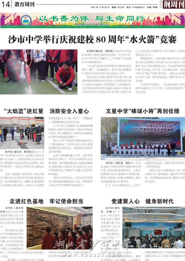 《荆周刊》2021年11月22日报道我校举行庆祝建校80周年"水火箭"竞赛
