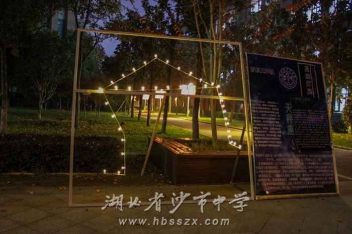 在全校师生喜庆建校八十周年之际,沙市中学暮光天文地理社联合青衫文学社推出了星座灯展活动。