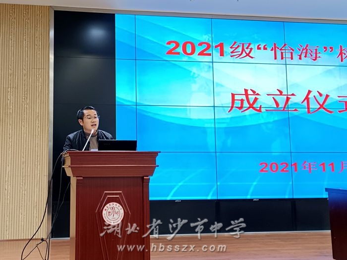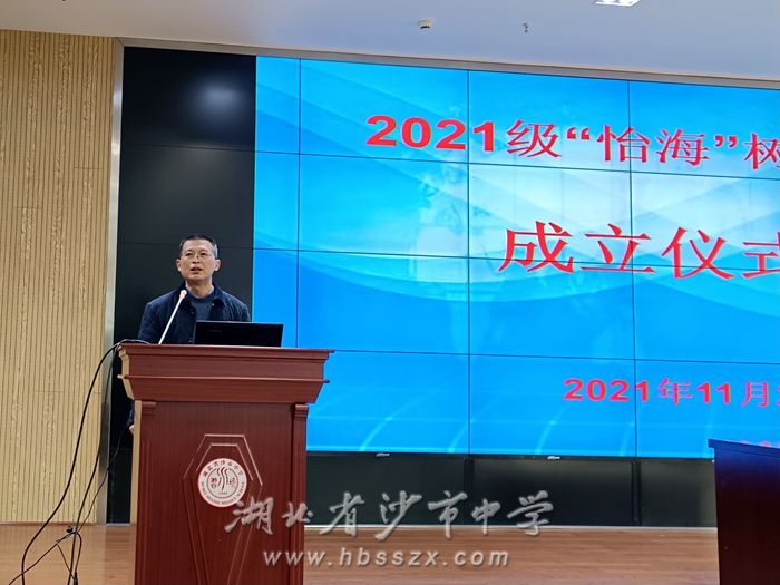 2021年11月23日下午第四节课,我校2021级怡海树人班在我校综合楼二楼举行成立仪式。该活动由学生成长中心主任李雪冰主持,我校党委委员、副校长徐善慧出席了本次活动并发表重要讲话。