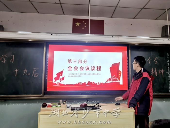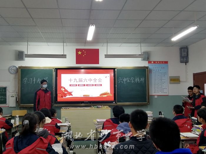 中国共产党第十九届中央委员会第六次全体会议于11月8日至11日在北京召开。为深入学习和弘扬十九届六中全会精神,充分认识全会的重要现实意义和深远历史意义,提升我校学生的政治高度,2021年11月24日下午第四节课,我校组织各班开展了“学习十九届六中全会精神”主题团会。