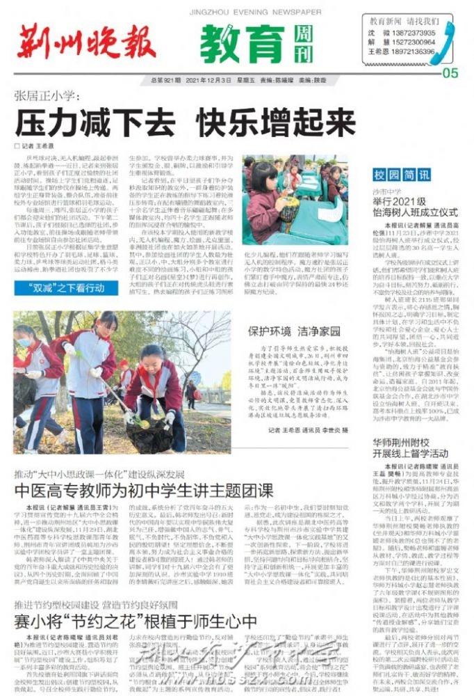 《荆州晚报》2021年12月3日报道我校举行2021级怡海树人班成立仪式