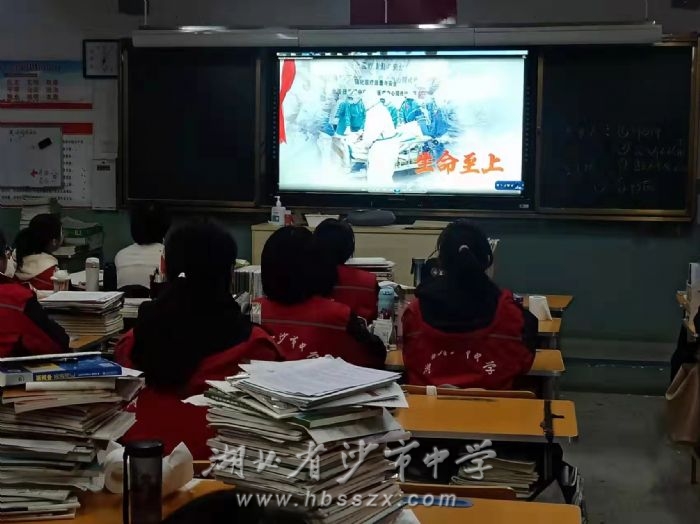 根据市党史学习教育办公室的总体要求,为充分利用好抗疫大思政课,推动我市青少年党史学习教育走向深入。在学校党史学习教育办公室统一部署下,12月4日晚上,我校各班通过一体机集中收看“党史学习教育:抗疫大思政课系列宣传片——荆州市直卫健系统抗疫先进典型事迹报告会”。