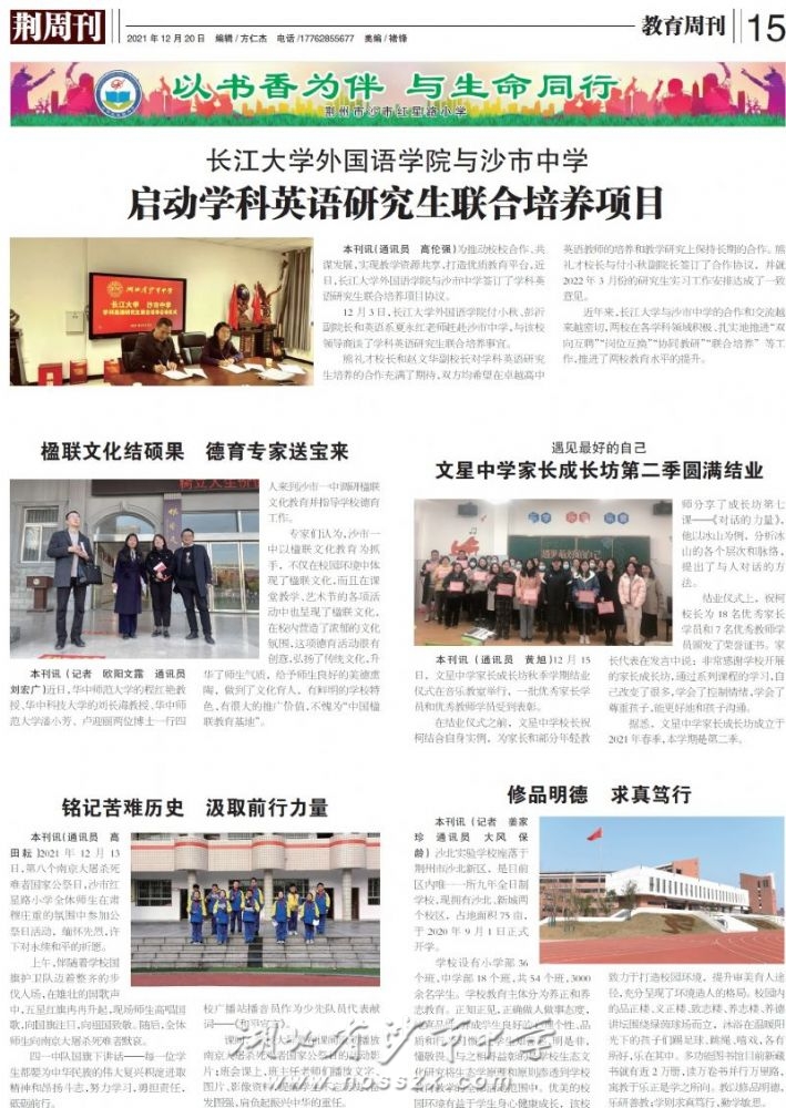 《荆周刊》2021年12月20日报道我校与长江大学启动学科英语研究生联合培养项目