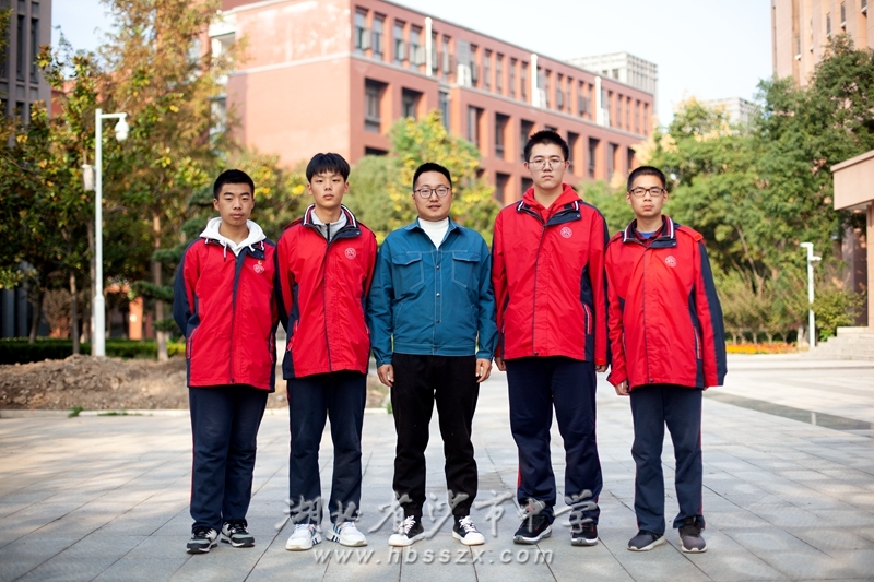 沙市中学化学竞赛教练杜景泉老师与获得省赛区一等奖的四名学生合影