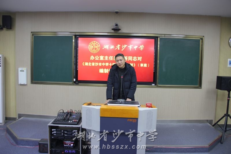 会上,办公室主任唐年新同志对《湖北省沙市中学“十四五”发展规划》(草案)编制情况作了说明。随后,会议对《湖北省沙市中学“十四五”发展规划》(草案)进行表决,获得一致通过。