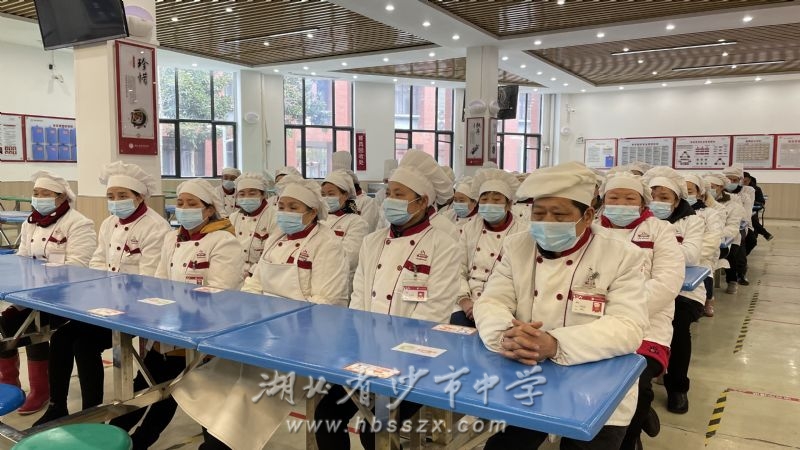 为了提高食堂从业人员的食品安全意识和责任意识,2月22日下午3时,沙市中学总务处在学生食堂一楼开展了食品安全卫生知识培训。沙市中学工会主席胡直、总务处主任李德植、副主任孙旭波、食堂经理黄大源和食堂全体员工参加培训会,会议由李德植主持。