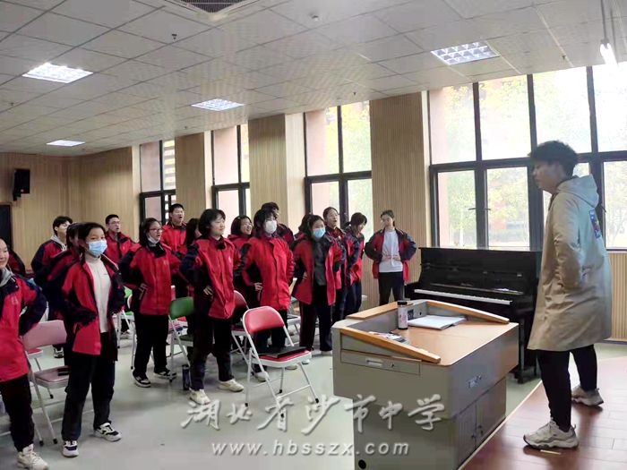 习坎艺术团合唱队在张盼老师的带领下进行发声练习