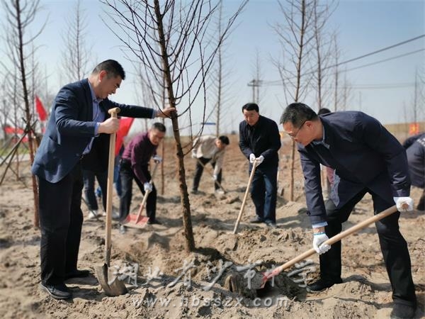 在专业技术人员的指导下,以三至五人为一组,或挥锹铲土,或扶苗培土,或踏土夯实,认真完成每道工序。带队领导不断叮嘱大家要按照规范操作,确保栽一棵树成活一棵树。一阵忙碌之后,我校教师顺利完成40棵树苗的栽种任务,一排排树木迎风而立,在和煦的春风中焕发着勃勃生机。