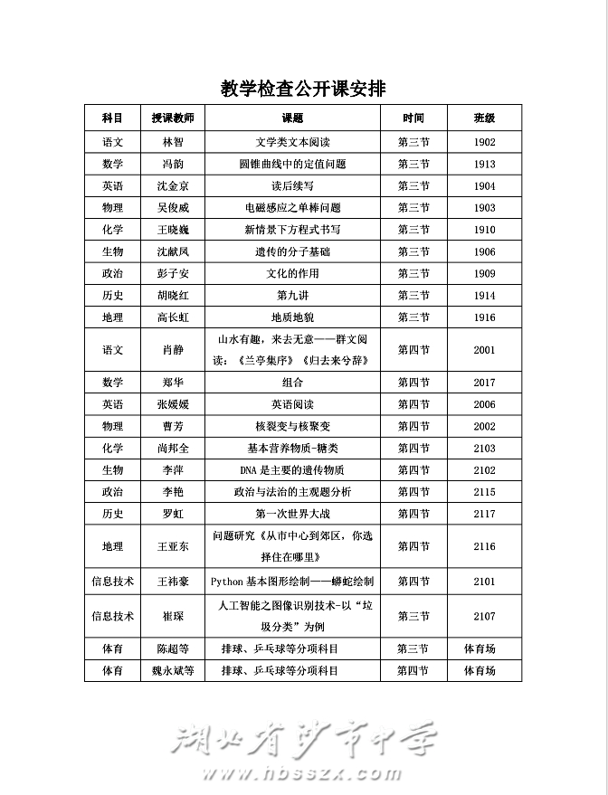 全学科听课安排