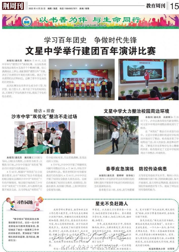 《荆周刊》2022年4月25日报道我校"双优化"整治不走过场