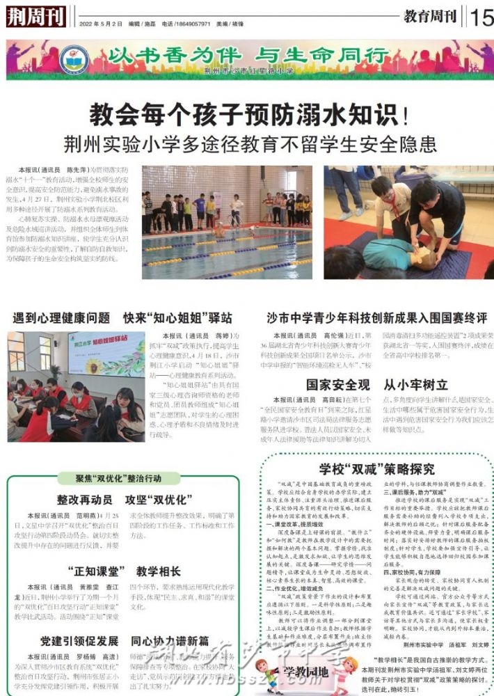 《荆周刊》2022年5月2日报道我校青少年科技创新成果入围国赛终评