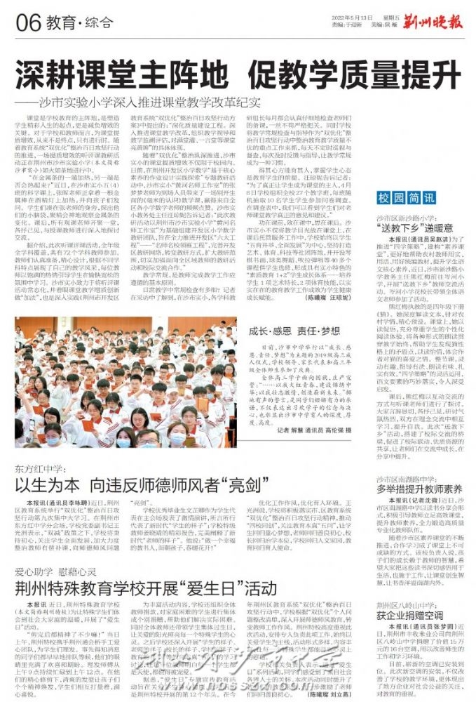 《荆州晚报》2022年5月13日报道我校举行2019级高三成人仪式