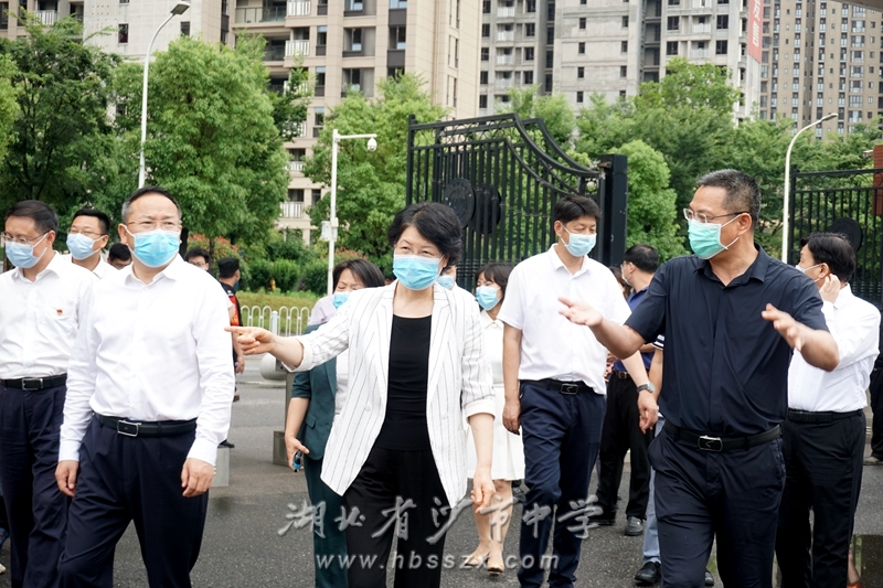 肖菊华一行临行前嘱托学校领导 6月1日,距离2022年高考还有5天,副省长肖菊华来到湖北省沙市中学调研高考准备情况,荆州市市委书记吴锦、省政府副秘书长丁辉、省教育厅厅长周静、市政府副市长严红参加调研。