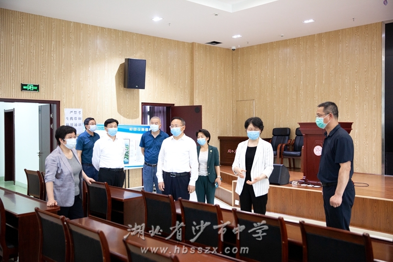 肖菊华一行察看了考生入场身份识别、考场布置、无线信号侦测与屏蔽、视频监控、考务工作室等考试组织服务场所,详细听取了沙市中学党委书记、校长熊礼才的情况介绍。她对沙市中学在考场布置、安检技防、服务考生等方面的做法给予了充分肯定。