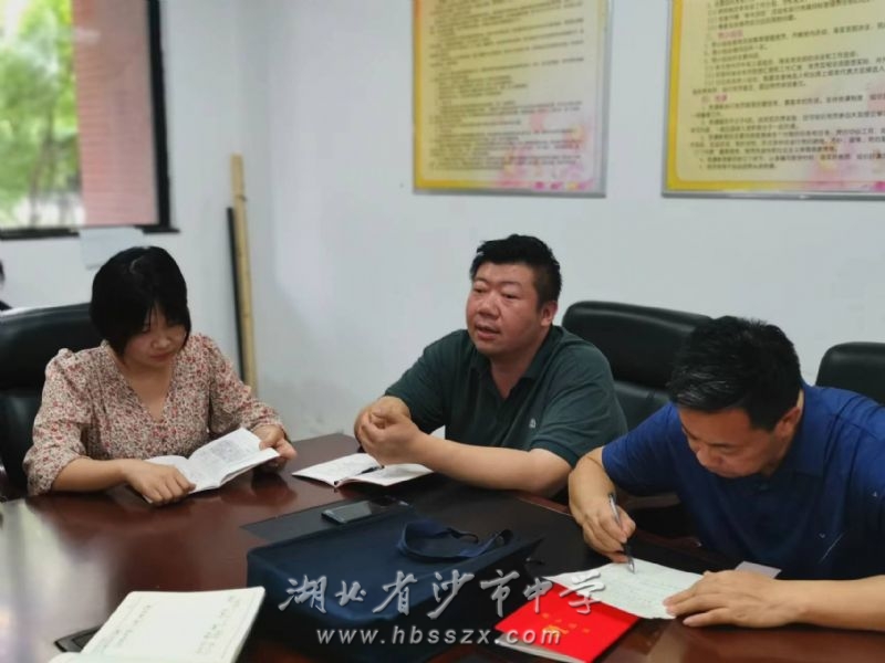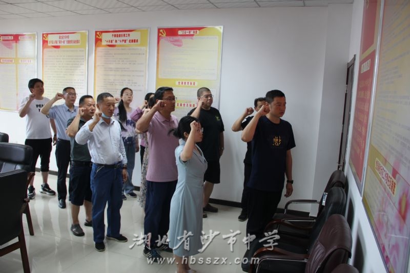 集体宣誓 根据市委组织部、市直机关工委的安排,结合沙市中学实际工作安排,6月13日下午,沙市中学各党支部在党员活动室开展了6月支部主题党日活动。本次活动的主题为:坚持为党育人,自觉担当尽责。活动由各支部书记主持,支部全体党员参加。