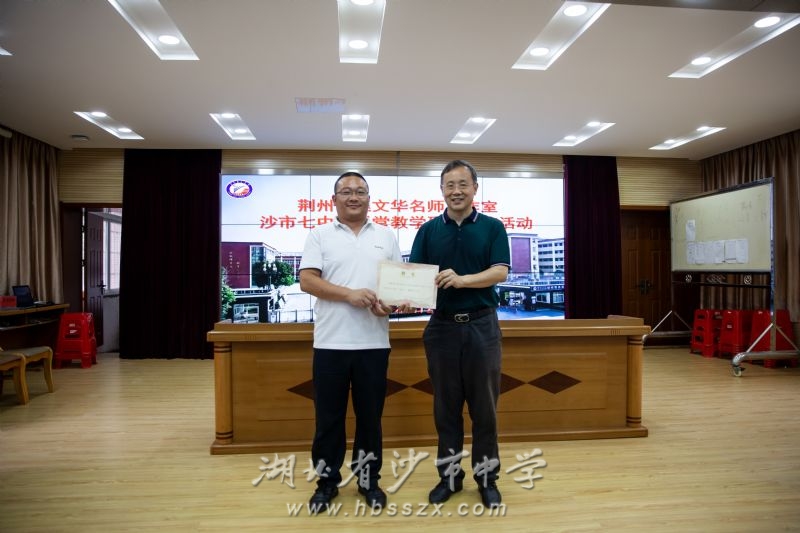 赵文华老师为沙市七中王锋老师颁发工作室沙市七中名师工作坊聘书