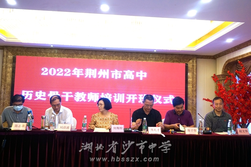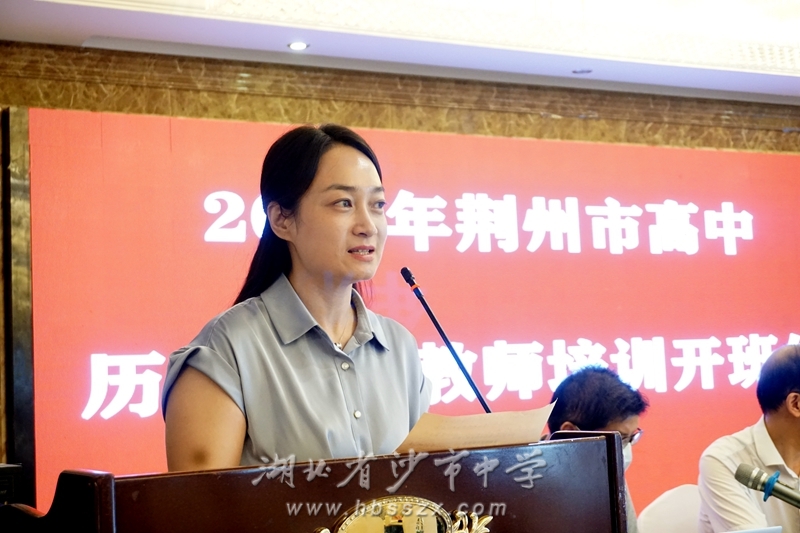 为努力办好人民满意的教育,进一步加强教师队伍建设,提高高中历史教师的理论素养和业务能力,8月18日,由沙市中学承办的荆州市历史骨干教师培训班在美江山国际酒店开班。荆州市教育局、市教科院、沙市中学领导及来自荆州市各县市区的120多名高中历史学科教师参加了开班仪式,仪式由沙市中学教师发展中心副主任张瑶主持。