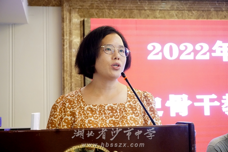 荆州市教育局副局长何梅娇发表讲话。她分析了本次培训工作的重要意义,并提出培训工作要求:一要珍惜机会,教师培训是促进教师专业化成长、更好地实现职业理想的基本途径;二要端正态度,以全面提升为方向;三要严守制度,以培训纪律为要求;四要学思结合,以学有所获为目标。她希望每一位学员都要转变角色,摆正位置,集中精力,保证学习时间,全身心投入到此次学习中。