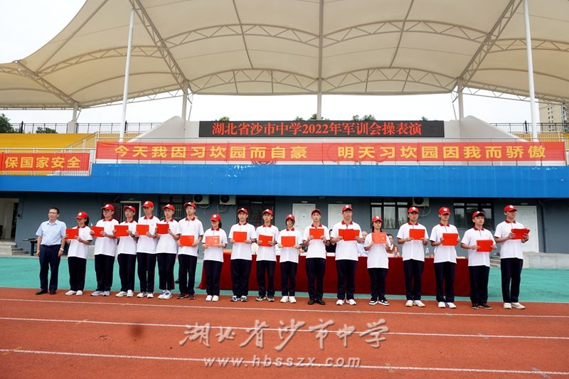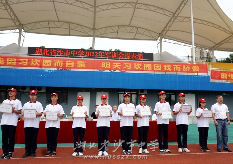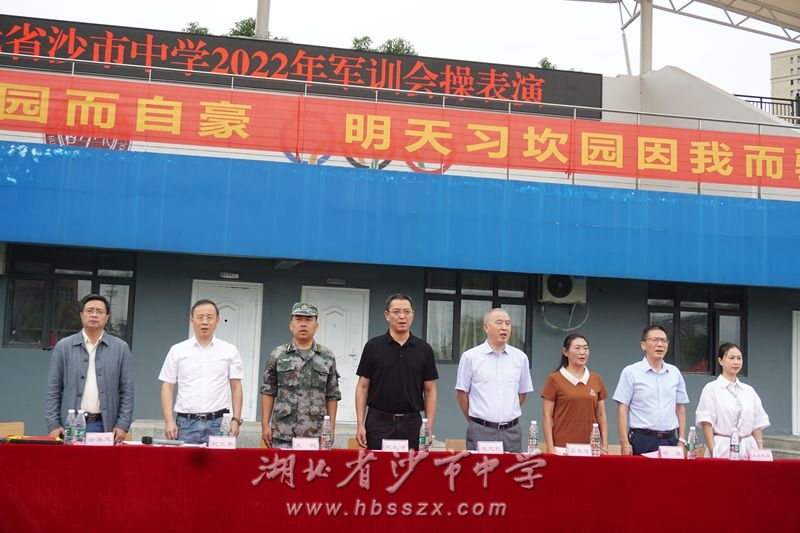 8月31日,沙市中学在体育场举行了2022级新生军训会操表演,荆州市民兵应急营党委委员王健、沙市中学全体校级领导、家长代表出席,高一年级17个方阵接受检阅。
