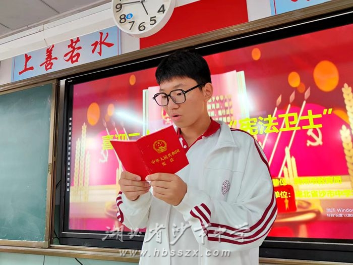 为弘扬宪法精神、迎接党的二十大胜利召开,2022年9月7日下午第四节班会课,我校组织高一年级各班开展了“喜迎二十大、争做宪法卫士”主题班会。