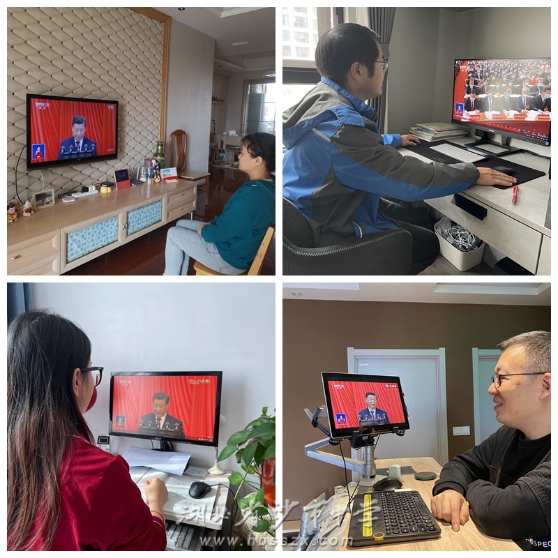 行政后勤支部部分教师认真收看直播