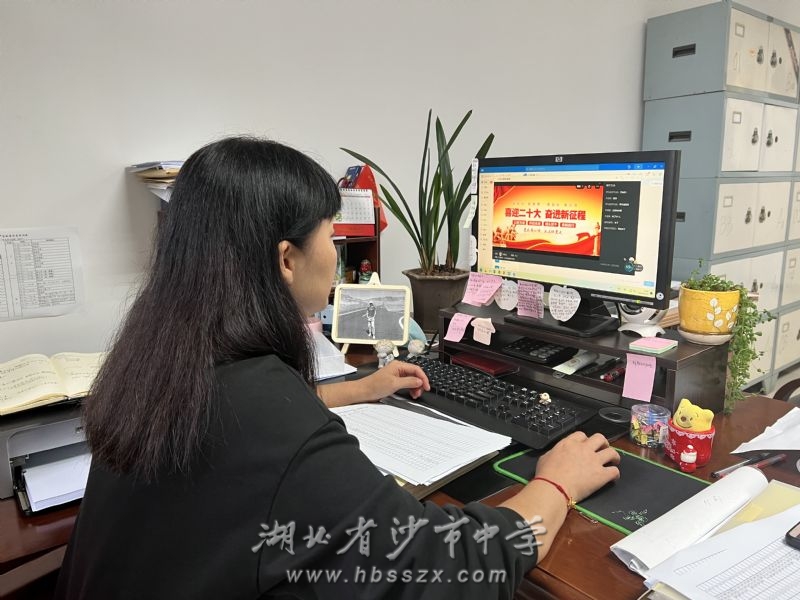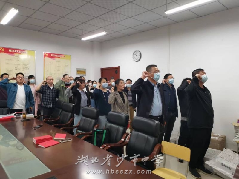 重温入党誓词 根据市委组织部、市直机关工委的安排,结合学校疫情防控形势下的工作实际,10月24日下午,沙市中学各支部分别在线上和线下开展了10月份主题党日活动。本次活动的主题为:学习宣传贯彻党的二十大精神。会议由各支部书记主持,全体党员同志参加会议。