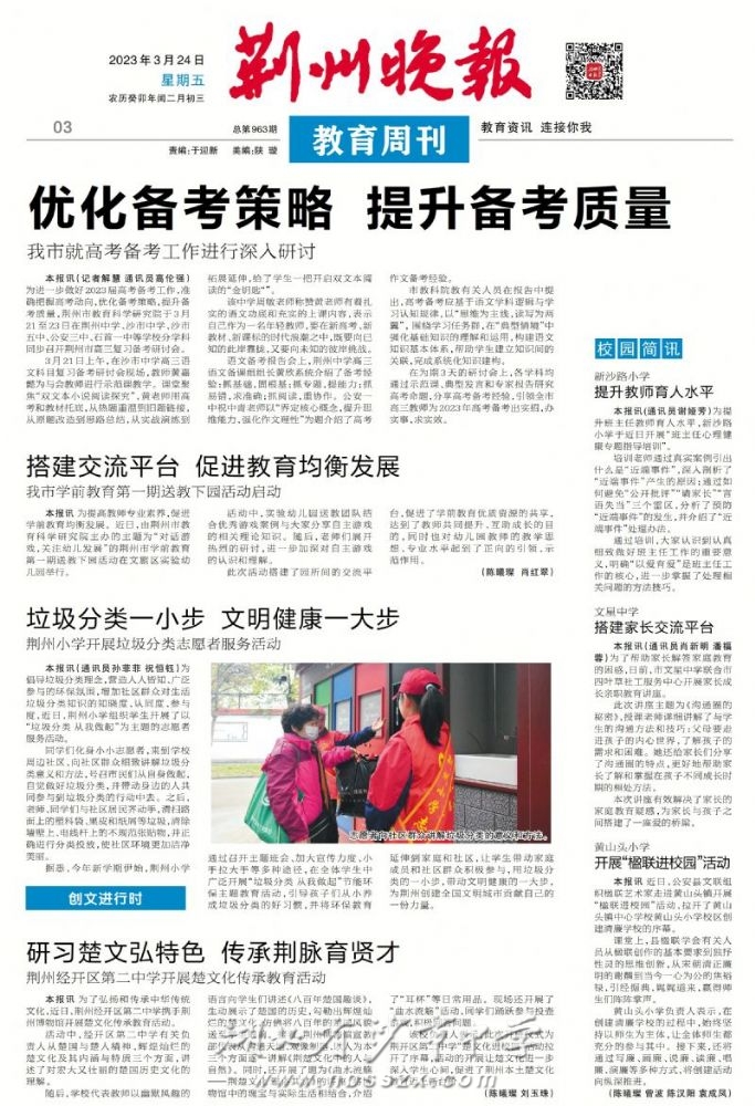 《荆州晚报》2023年3月24日报道我校承办荆州市高考复习备考研讨会