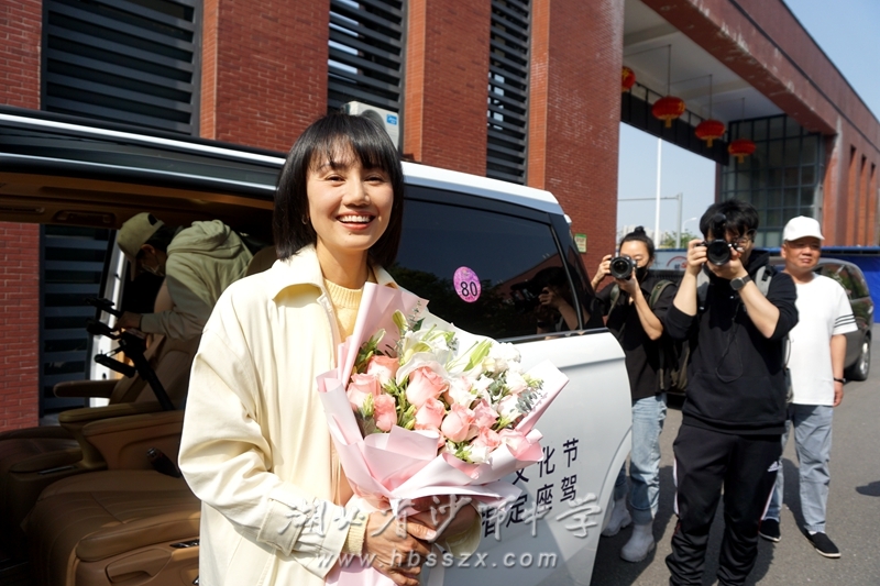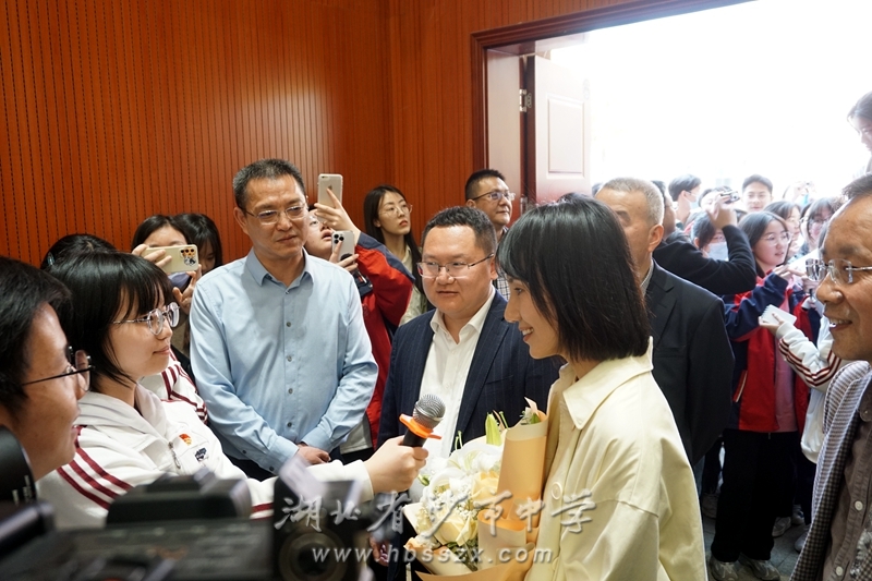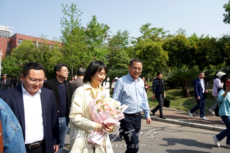 上午10:00,袁泉校友来到沙市中学,受到师生的热烈欢迎。