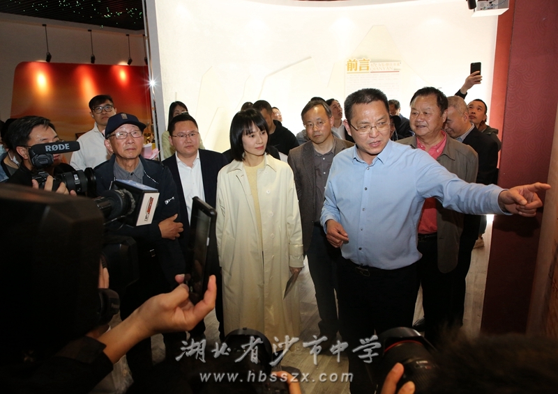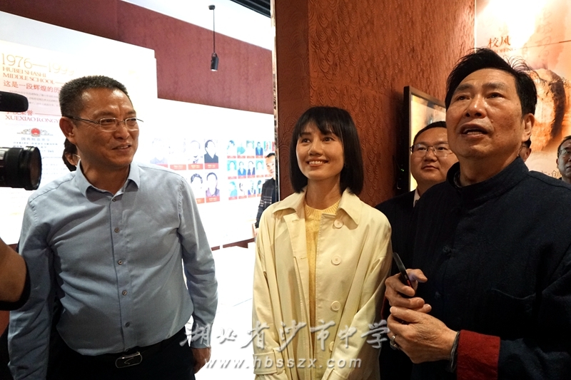 熊礼才校长陪同袁泉参观校史馆并做介绍