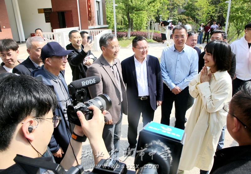 4月10日,在首届楚文化节与2022-2023年度电影频道M榜暨中国电影大数据盛典在荆州举办之际,著名表演艺术家、沙市中学96届校友袁泉回母校参观交流,沙市区委副书记、区委政法委书记郭熙胜,沙市区委常委、宣传部部长代晓娟,沙市中学党委书记、校长熊礼才和班子成员热情接待了袁泉校友一行。