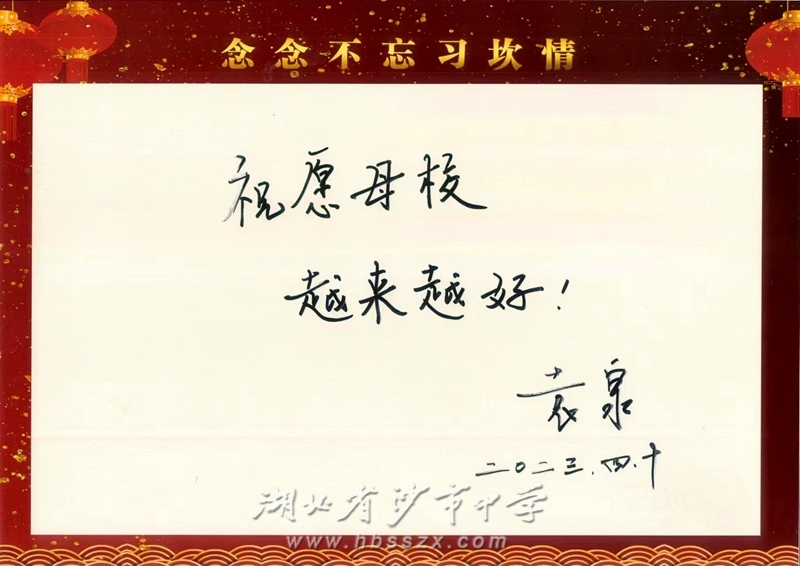 袁泉校友在留言薄上留言:祝愿母校越来越好