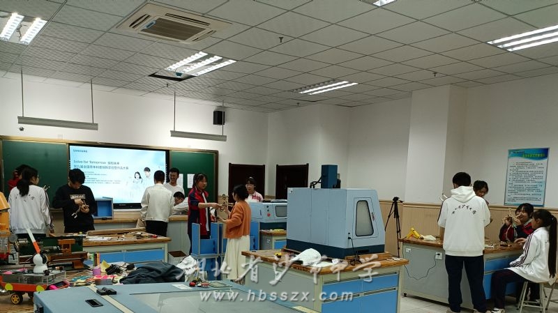 活动现场 为提高青少年科学文化素质和培养科技创新能力,按照“楚才计划”省级、市级管理办公室的要求,沙市中学组织“楚才计划”项目的学生积极参与各类活动,除“英才计划”冬令营、与高校导师交流等活动外,还广泛参与多种科技类竞赛,让学生能够将理论联系实际,积极参与科普创作活动。2023年3月底,为落实《中国科协办公厅关于举办第九届全国青年科普创新实验暨作品大赛的通知》(科协办函普字〔2022〕117号)要求,沙市中学组织“楚才计划”项目的学生参加第九届全国青年科普创新实验暨作品大赛科普实验项目--“未来太空车”(中学组)比赛。