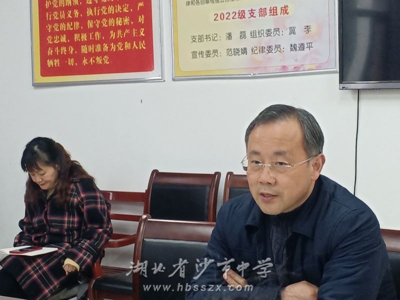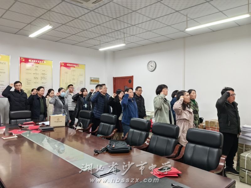 集体宣誓 根据市委组织部、市直机关工委的安排,结合沙市中学实际工作,4月24日下午,沙市中学各党支部在党员活动室开展4月支部主题党日活动。活动主题为“致英雄·当先锋”。本次会议由各支部书记主持。