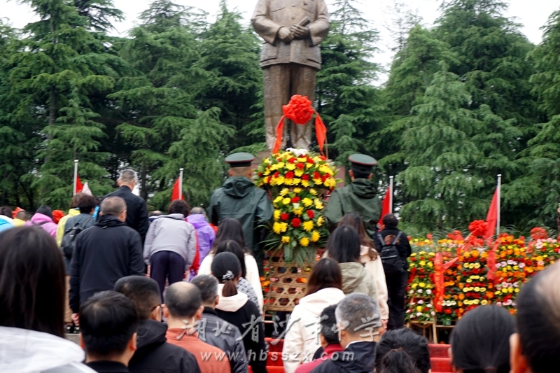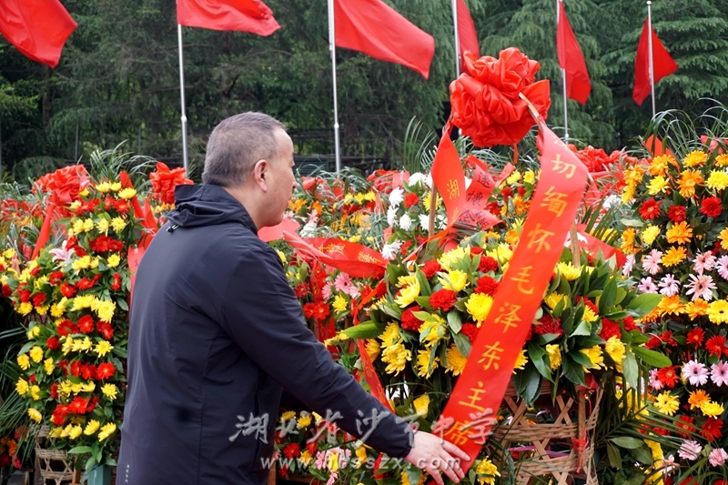 青松挺拔,红旗飘扬,拱卫伟人。在铜像广场,毛主席身躯伟岸,双目炯炯,凝望大地。习坎学子神情肃穆,向毛泽东铜像敬献花篮,在主席铜像前深深三鞠躬,在庄严的乐声中缓绕毛泽东铜像一圈,表达怀念之情。