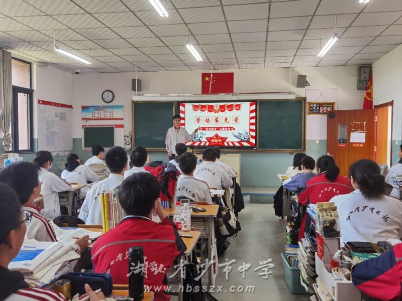 劳动教育主题班会 劳动教育是新时代党对教育的新要求,是全面发展教育体系的重要组成部分,为赓续劳动传统,践行劳动教育,2023年4月24日,湖北省沙市中学在升旗仪式上组织开展2023年4月劳动教育专题活动,以期用教育培养学生正确劳动价值观和良好劳动品质,全校师生参加专题活动。