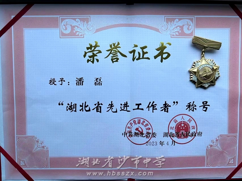 4月27日,2023年湖北省庆祝“五一”国际劳动节暨省劳动模范和先进工作者表彰大会在武汉隆重举行,沙市中学教师潘磊被被省委、省政府授予“湖北省先进工作者”荣誉称号。