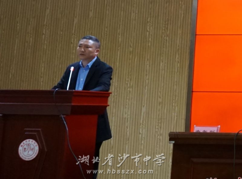 4月28日下午,沙市中学召开新党委班子集体亮相全体教职工大会,沙市中学党委委员、副校长唐年新主持会议。