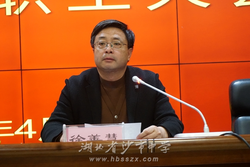 党委副书记、校长徐善慧同志代表新党委班子做表态发言。他说:“沙市中学是我们共同的家园,我爱这所学校,我愿意为沙市中学变得更加美好而付出我的努力!”
