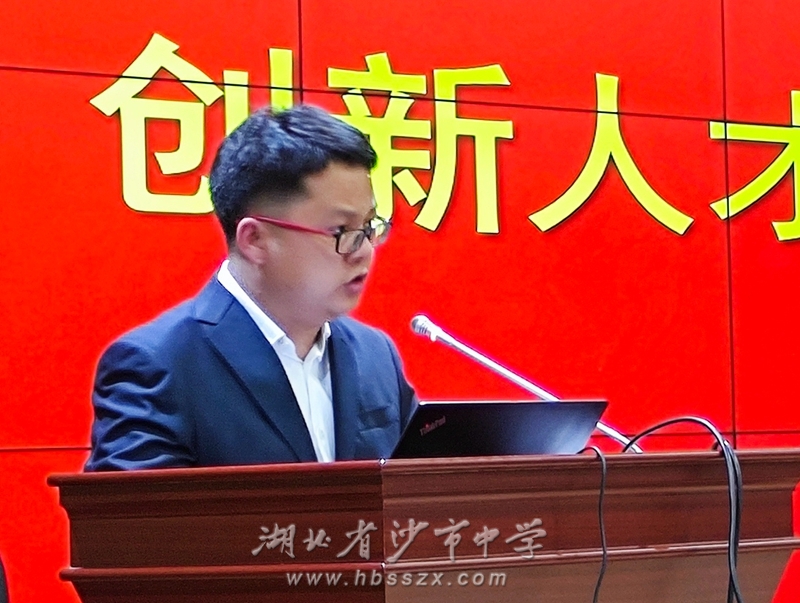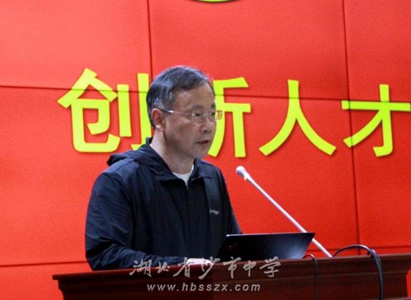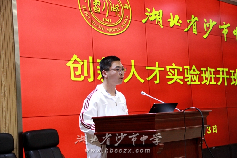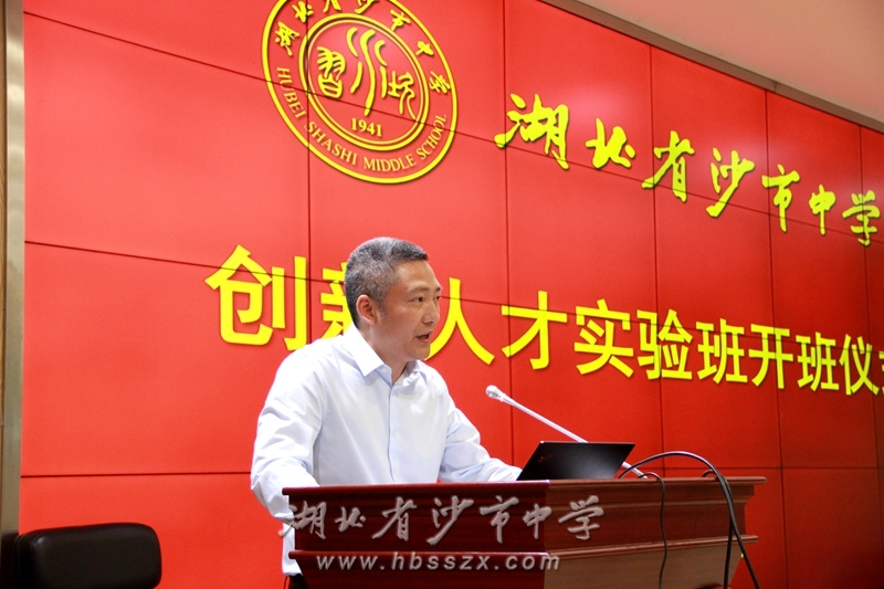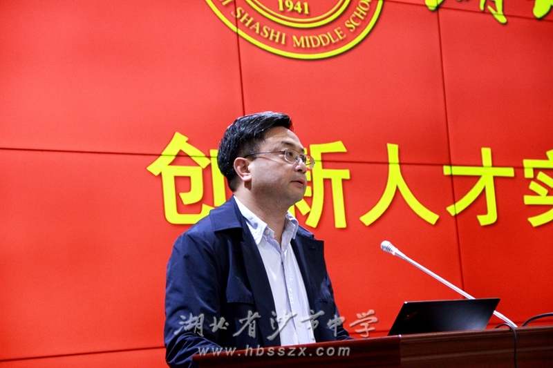 副校长唐年新致欢迎辞。他说,沙市中学创新人才班的选拔与培养,是市委市政府大力推进荆州市高中教育高质量发展的战略布局。