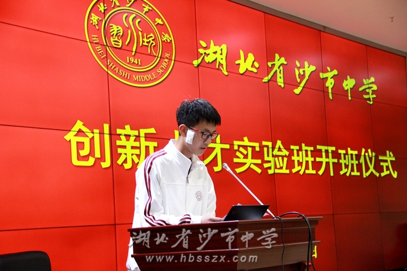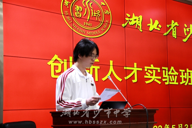 文铭灿:我代表首届创新人才班新生庄严承诺,我们将以沙市中学高考骄子秦禹潮、关奇学长为榜样,高举梦想的旗帜,昂首阔步,实现心中美好的愿望!但愿十多年后的沙市中学杰出校友纪念册里,有你,有我,有大家!