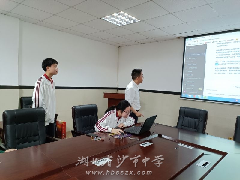 张涛教授辅导学生 张涛教授向沙市中学师生介绍了聊天机器人软件,并现场辅导学生进行操作,同学们真切感受到了聊天机器人软件给学习带来的便利。
