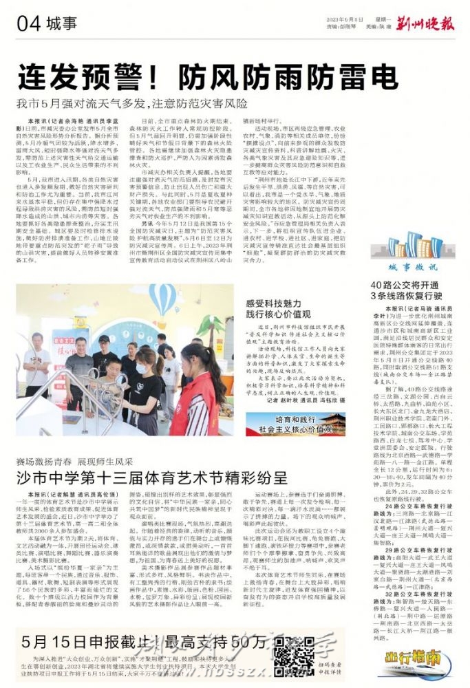 《荆州晚报》2023年5月8日报道我校体育艺术节精彩纷呈