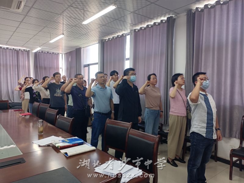 集体宣誓 根据市委组织部、市直机关工委的安排,结合沙市中学实际工作,6月19日下午,沙市中学各党支部在党员活动室开展6月支部主题党日活动。活动主题为“重温历史辉煌,汲取奋进力量”。活动由各支部书记主持,支部全体党员参加。